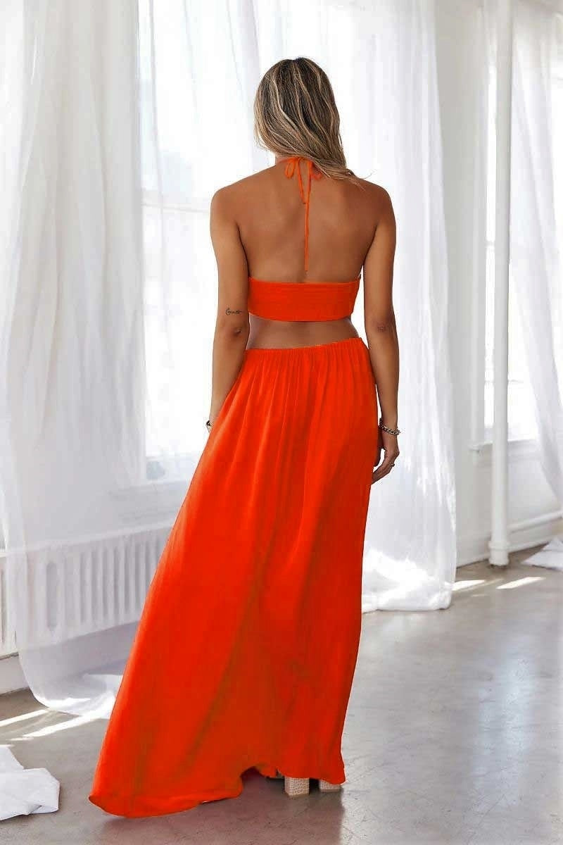 Orange Cut Out Waist Halterneck Maxi Dress